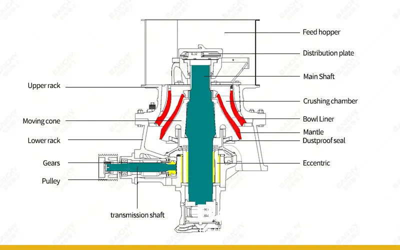 Основная структура и принцип работы пружинной конусной дробилки PYB900
