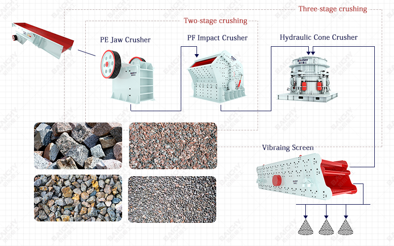 При выборе двухступенчатой или трехступенчатой дробилки необходимо всесторонне рассмотреть и взвесить множество факторов, таких как характеристики сырья, производственные потребности, производительность оборудования, затраты на техническое обслуживание и экономические выгоды.