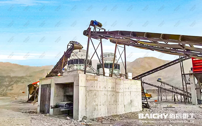 Решение: Используется специальная комбинация "щековая дробилка + конусная дробилка для твердых пород". Щековая дробилка выполняет первичное крупное дробление, а конусная дробилка - вторичное и мелкое дробление. Обе дробилки работают по принципу послойного дробления, что увеличивает срок службы износостойких деталей.