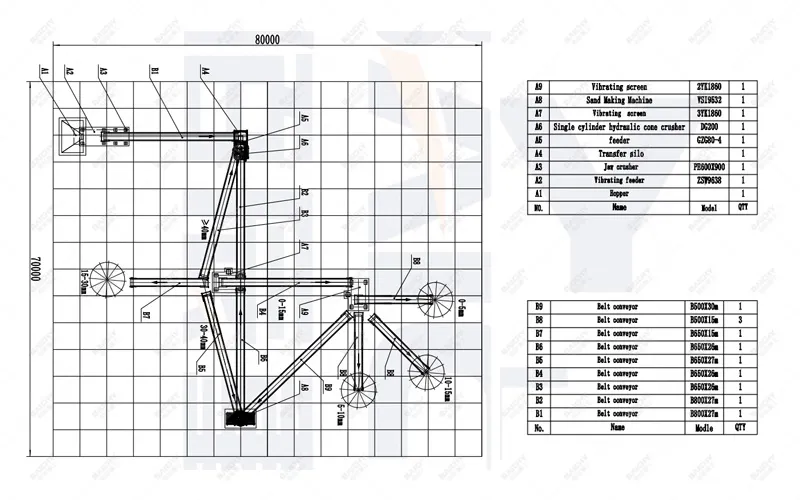 Эта производственная линия отличается компактной компоновкой и высокой степенью автоматизации, что не только снижает эксплуатационные расходы, но и значительно повышает эффективность производства. Готовый заполнитель имеет отличную форму частиц и хорошо сбалансированную градацию, полностью отвечающую высоким стандартам производства местных и международных строительных материалов в Марокко, обеспечивая надежную поставку сырья для городского строительства, автомобильных и железнодорожных проектов в Марокко. Эта производственная линия является не только успешным применением эффективной технологии дробления, но и образцом идеального сочетания оборудования китайского производства и международных проектов, обеспечивая воспроизводимое и масштабируемое решение для районов со схожими геологическими условиями.